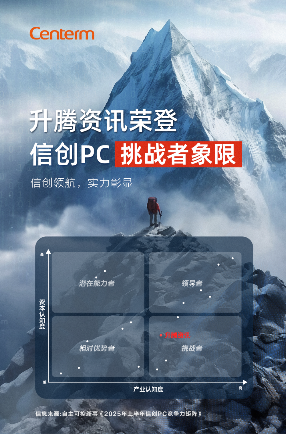 升腾作为推动信创产业发展的重要力量,凭借在信创领域的突出技术优势及广泛实践,在信创PC市场脱颖而出,位居第二梯队,荣登《2025年上半年信创PC竞争力矩阵》挑战者象限!这一荣誉充分彰显了升腾在信创领域的卓越实力,更是对其自主创新能力和行业赋能水平、发展潜力的高度肯定。