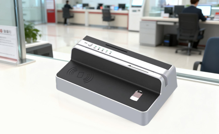 集成读卡器CKB-5150集成磁条卡、接触式IC卡、非接触式IC卡、二代证、指纹仪等功能模块于一机,可根据业务功能进行选配不同模块,可广泛应用于保险、银行、民政、证券、移动、电信等领域的业务办理场景。