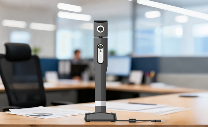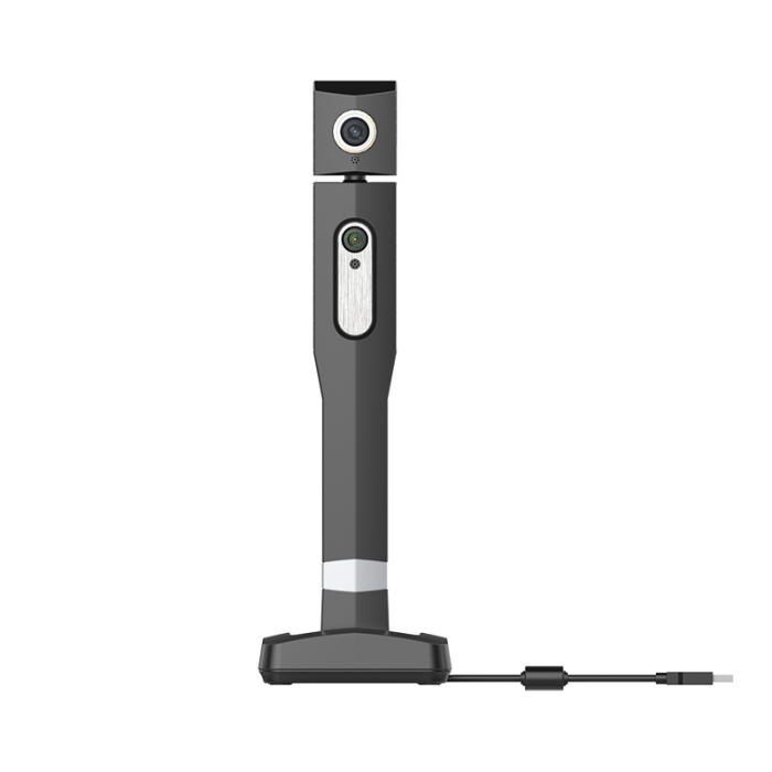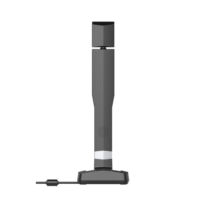 双摄像头在同一立柱上,分别朝向柜员和储户,整体外形美观大方 |