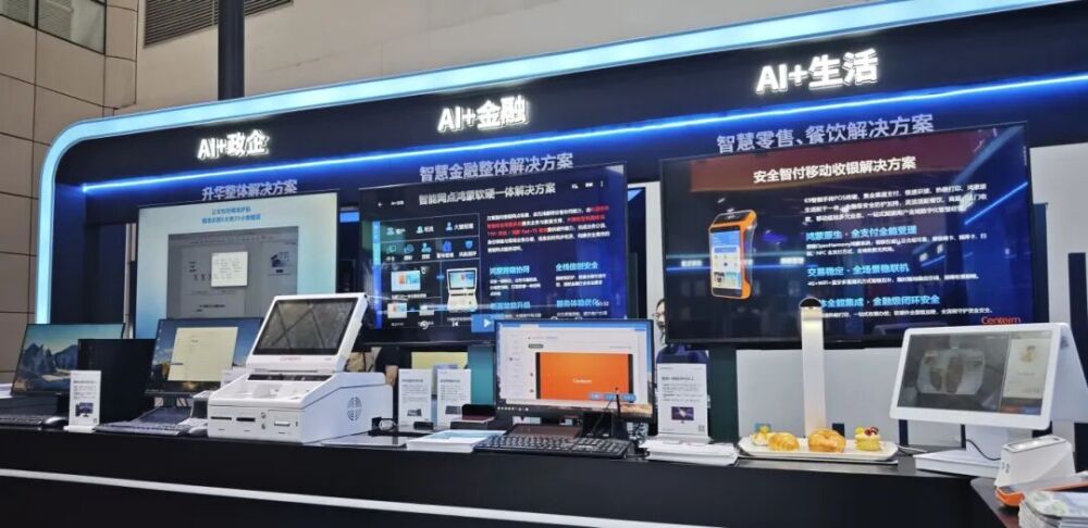 升腾基于柜面业务场景创新推出“金融信创柜面解决方案”,方案应用的信创一体机是基于兆芯KX-7000处理器研发,支持搭载银河麒麟、统信UOS桌面操作系统,同时可搭配“开源鸿蒙柜外清、护照仪、高拍仪”等主流外设产品,是营业厅场景无纸化改造的首选方案。其中,开源鸿蒙柜外清新增“鸿蒙同屏辅助功能”,通过鸿蒙软总线技术,让柜员在信创终端上操作“升腾鸿蒙助手程序”,通过圈选并引导储户操作,显著提升业务效率与体验。