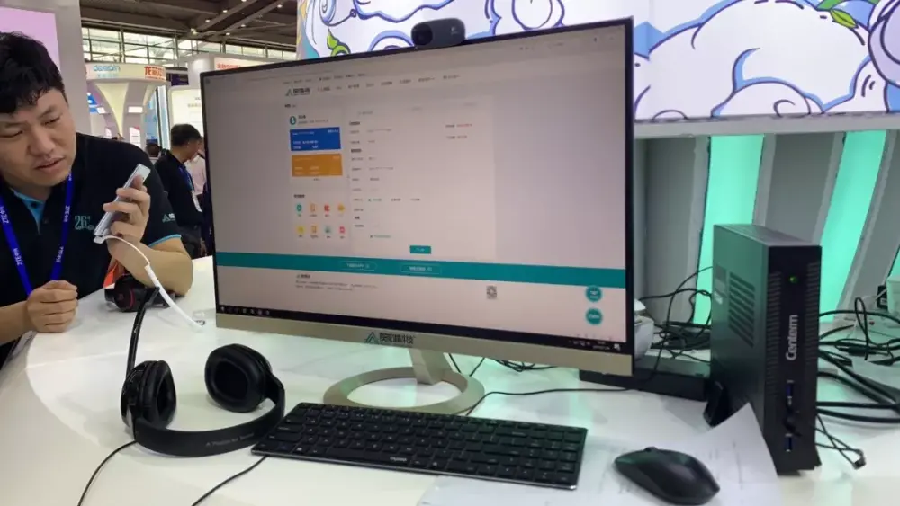 在金融展上,升腾与龙芯中科联合展示了金融行业全新形态瘦客户机产品,该产品基于龙芯CPU开发,搭载昆仑安全固件和国产操作系统,拥有强劲的本地处理性能,基本满足常规金融办公的使用需求,并支持金融终端仿真接入,完成配套升腾金融外设产品的开发和对接,快速对接金融柜面系统进行落地。