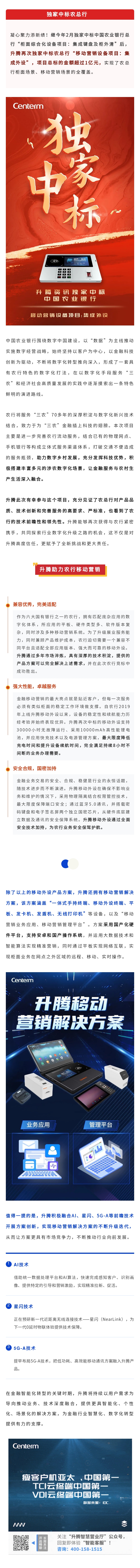 独家中标!升腾一举夺得中国农业银行总行“移动营销设备项目”!