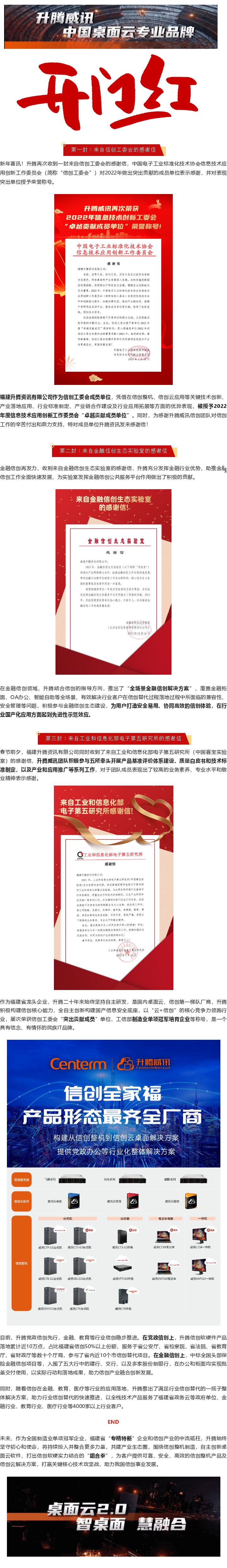 开门红,连收3封感谢信!升腾威讯再获信创工委会“卓越贡献成员单位”荣誉称号!