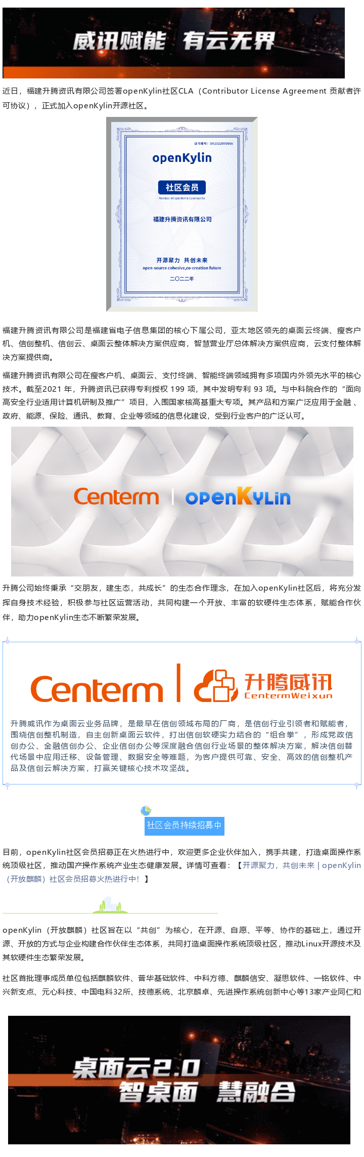 升腾威讯加入openKylin,提供桌面云解决方案助力社区发展!