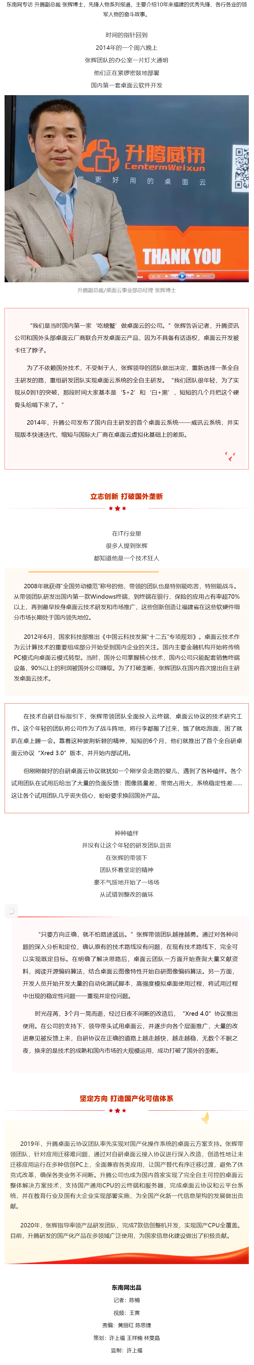 东南网专访 | 升腾副总裁 张辉上榜福建先锋人物系列报道!