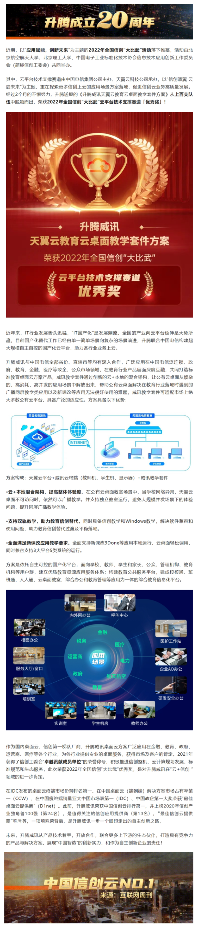 升腾威讯荣获2022全国信创“大比武”云平台技术赛道优秀奖!