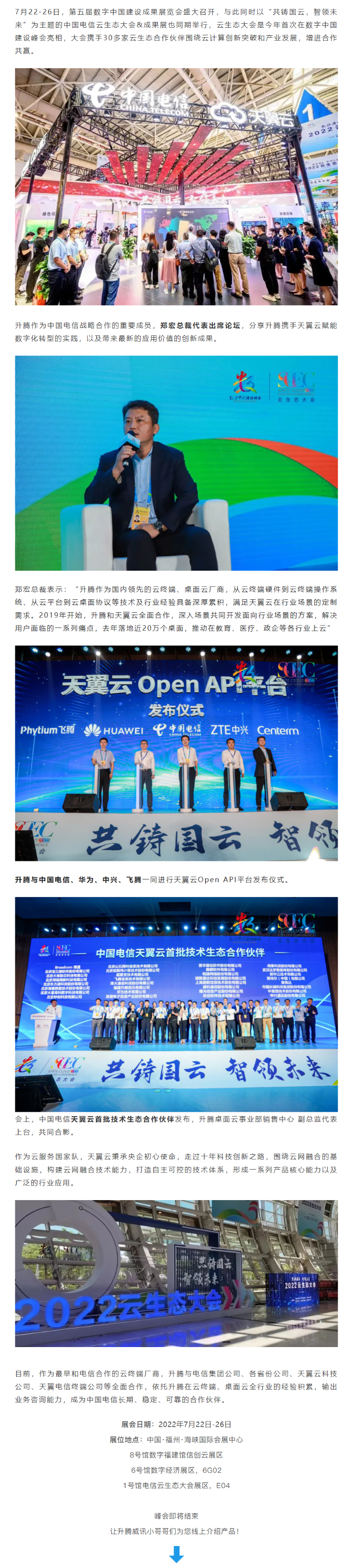 共铸国云 智领未来 | 升腾作为首批技术生态合作伙伴共同发布天翼云Open API平台!