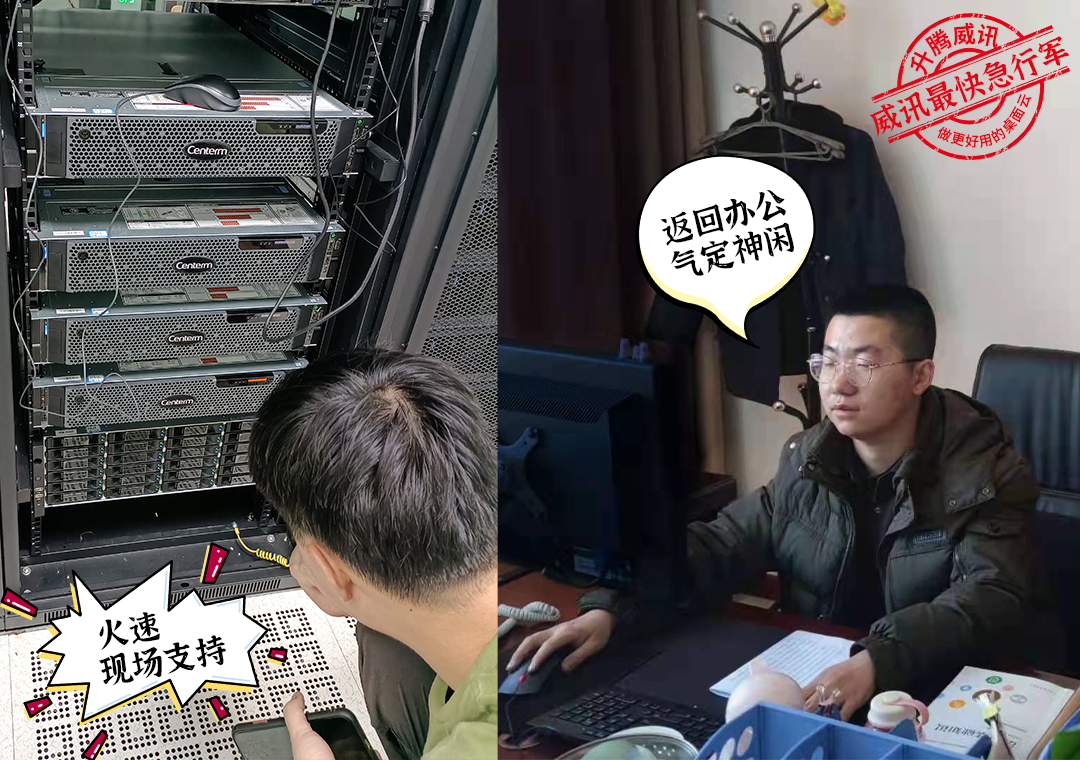 随时随地办公的何鑫(川渝区域技术支持),在现场支撑客户,同时远程为客户培训,他总是能“一人多线程”,把威讯云办公发挥淋漓尽致。“稳打稳扎”是他的代名词。