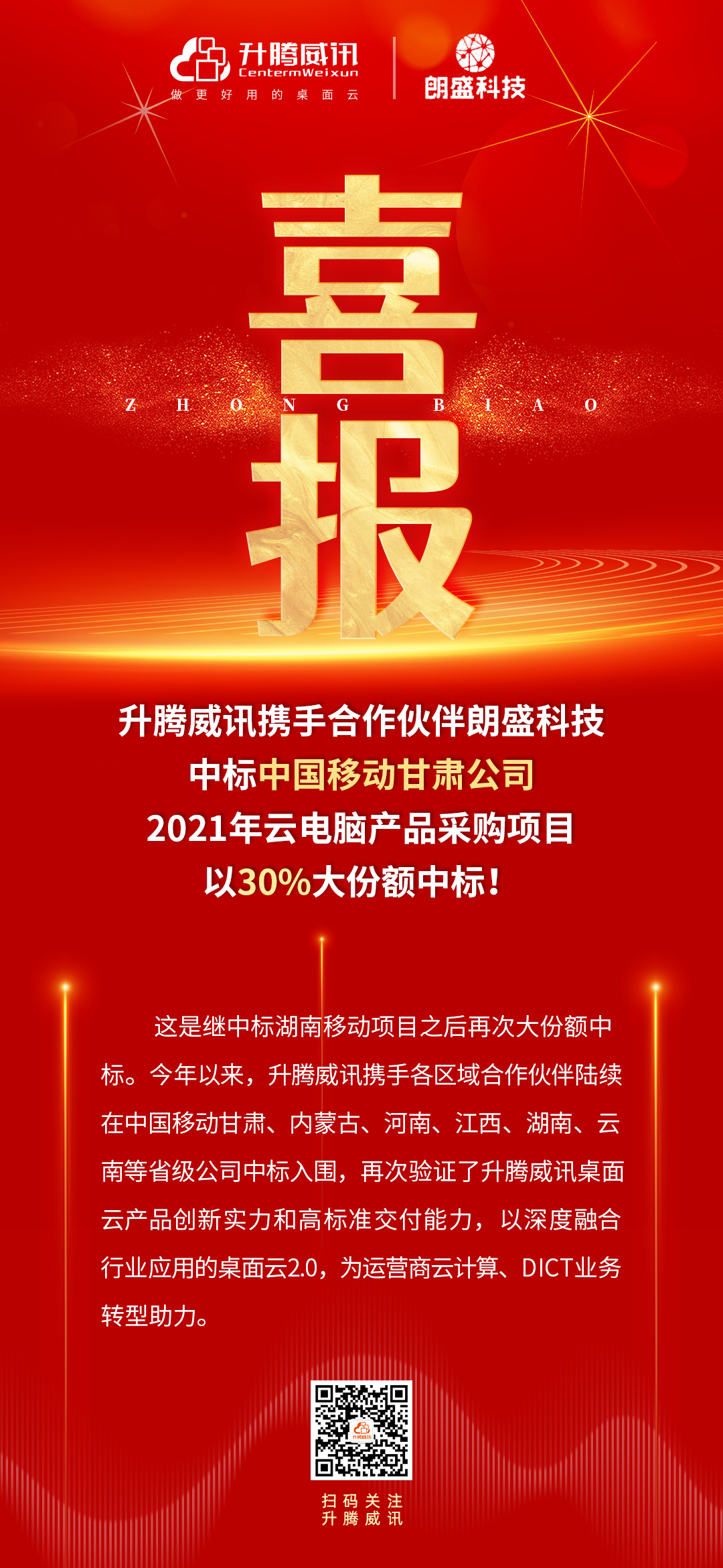 又双叒叕中标了!升腾威讯中标中国移动甘肃公司2021年云电脑产品采购项目