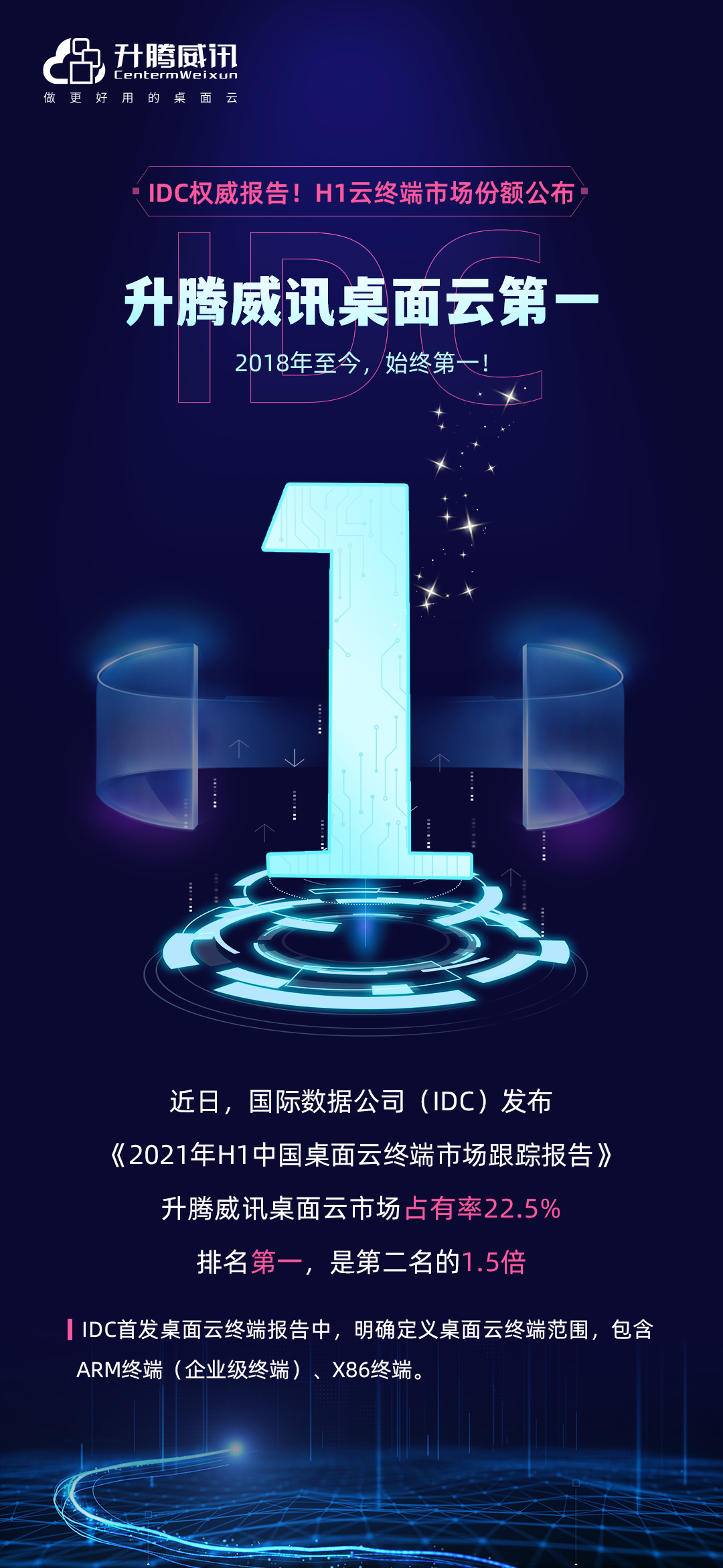 始终第一!IDC H1最新公布:升腾威讯桌面云蝉联市场份额第一