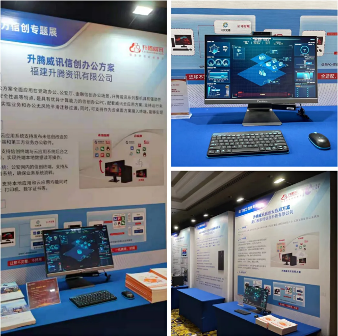 在2020信息技术应用创新典型解决方案成果展区,带来最新一代威讯信创云办公方案,展示了信创整机、云应用方案,全面展现升腾威讯在信创领域的创新成果及标杆案例。