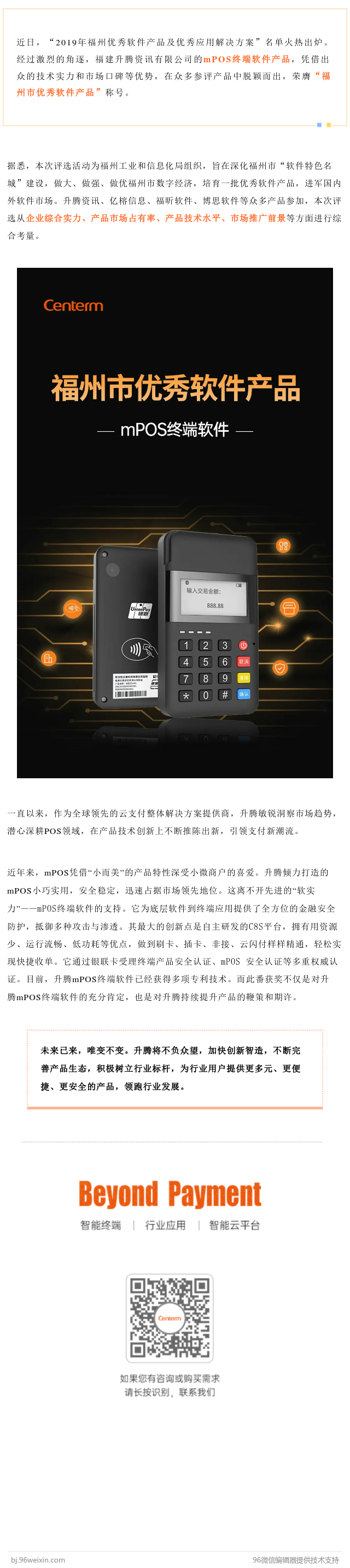喜讯|升腾mPOS软件实力斩获“2019年福州优秀软件产品”殊荣