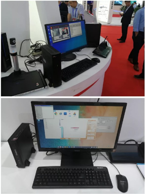 此次金融展,升腾威讯云在合作伙伴兆芯、龙芯中科展台上,基于兆芯、龙芯芯片的金融桌面终端、金融云办公解决方案全新亮相。