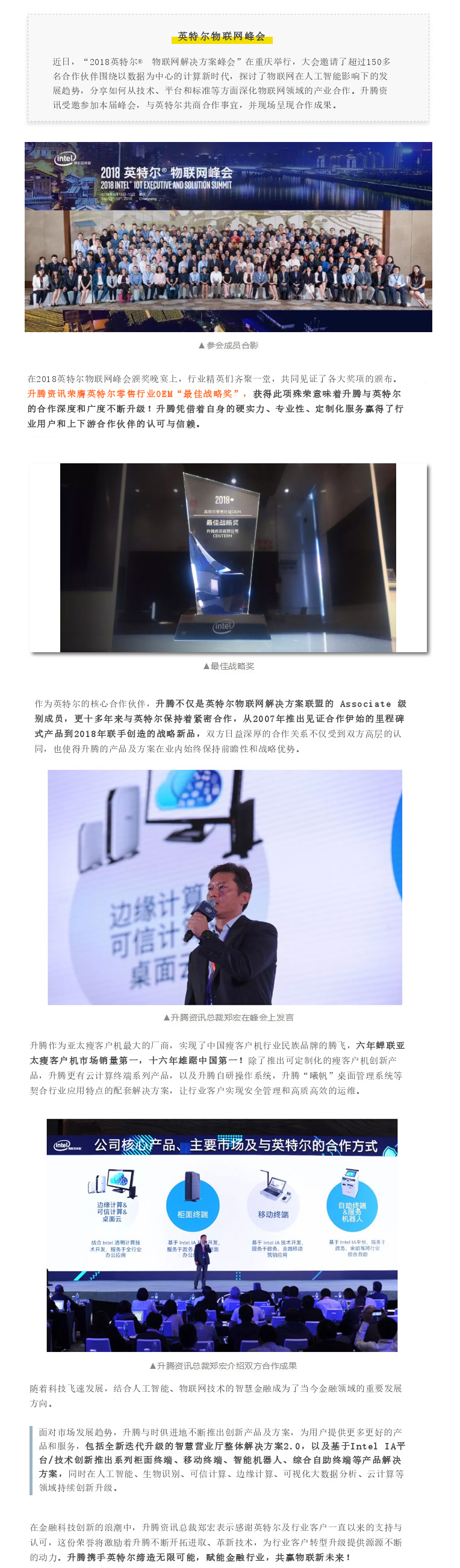 锐意变革,战略共赢|升腾资讯获2018英特尔物联网“最佳战略奖”!