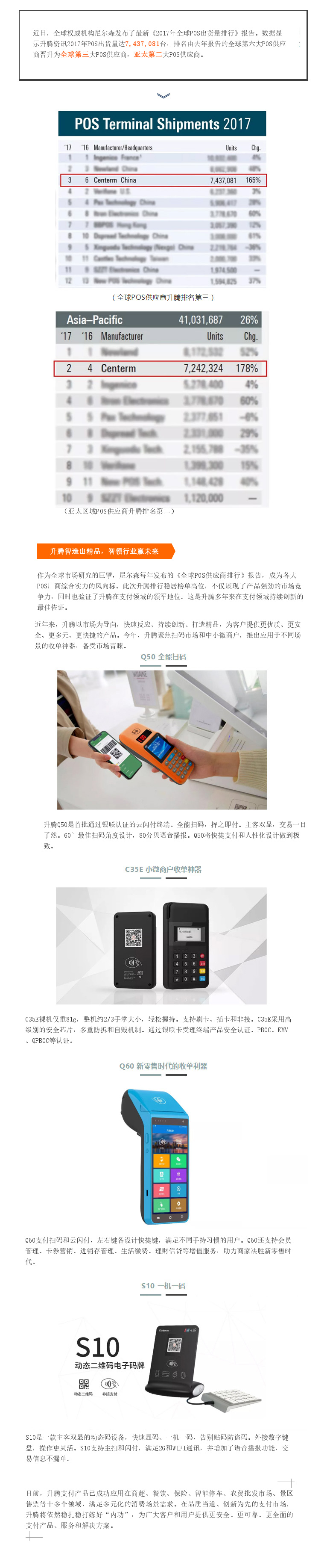 尼尔森最新排名,升腾资讯跃居全球第三大POS供应商