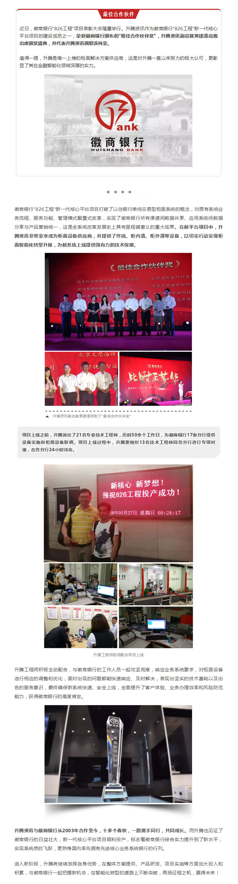 朋辈健勇路未央,砥砺征途再昂扬|升腾资讯荣膺徽商银行“最佳合作伙伴奖” !