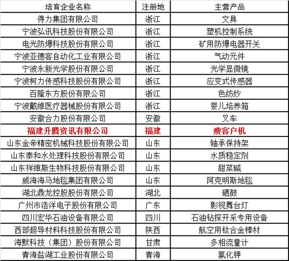近日,工业和信息化部发布《2017全国制造业单项冠军企业和单项冠军产品名单公示》。福建升腾资讯有限公司成功入选“单项冠军培育企业”,并且是福建省唯一一家入选的企业。
