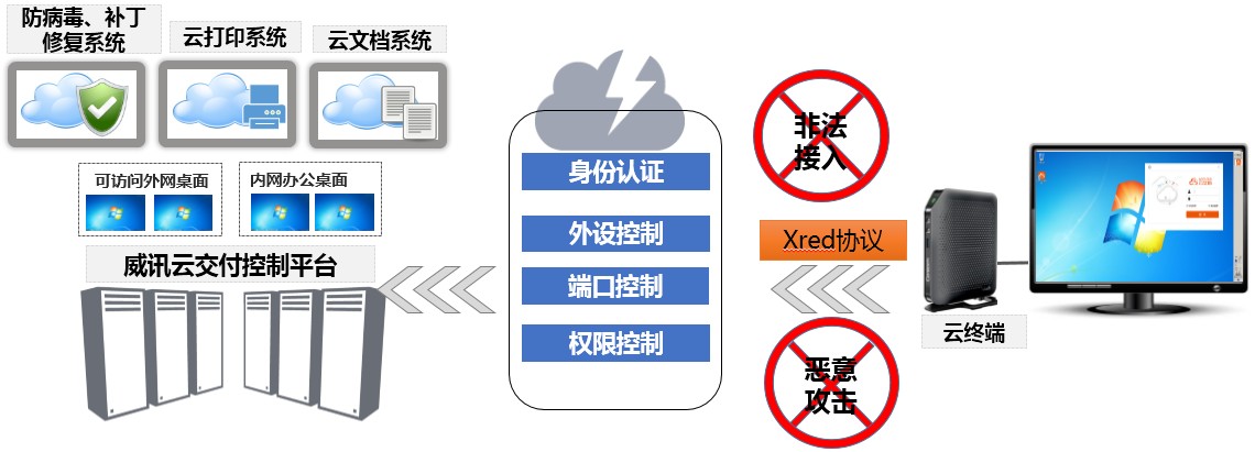 基于自研可控的升腾威讯云企业版平台,构建用户所需的桌面资源。