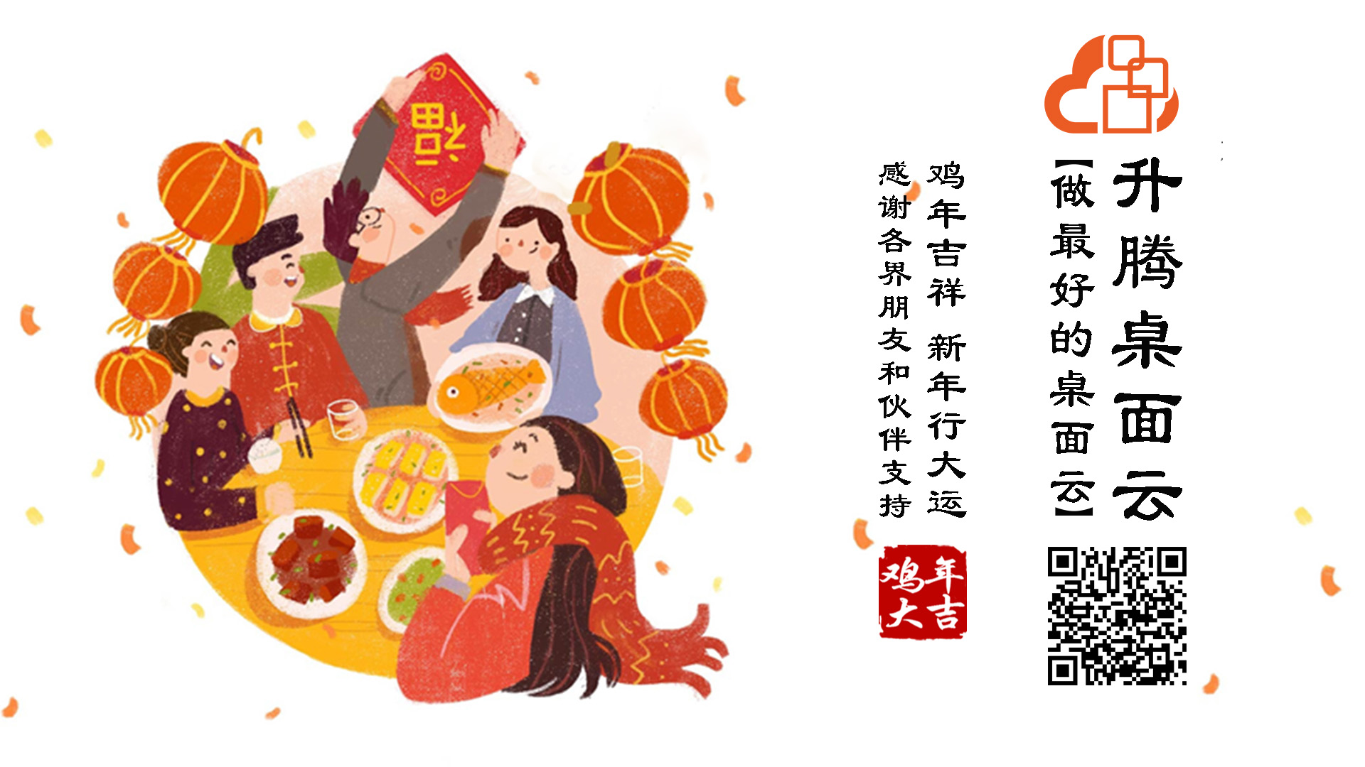桌面云,无时无刻陪伴 2017,爱你一起~ 识别图中二维码 一份来自升腾桌面云的新年祝福送给你 ▼