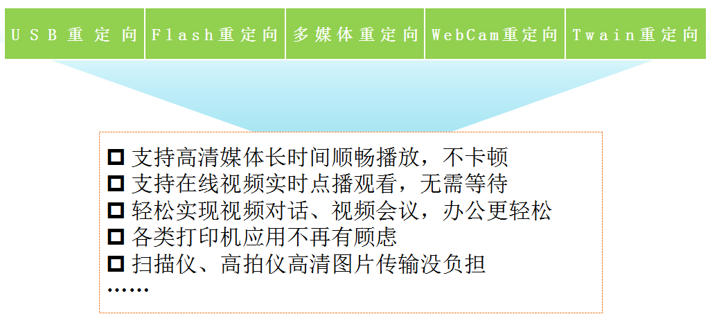 外设支持一直是桌面云面临的一大难题,外设支持受限,直接影响用户体验,甚至给用户带来直接损失。虽然目前各厂家都在全力开发外设支持方面的技术,但都没有实质的突破。