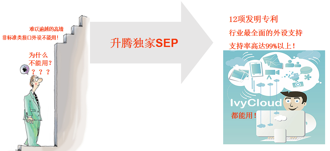 IvyCloud专业版2.0融合集12项发明专利于一身的SEP产品,全面支持各类标准化接口和非标准接口设备,外设支持率高达99%以上。